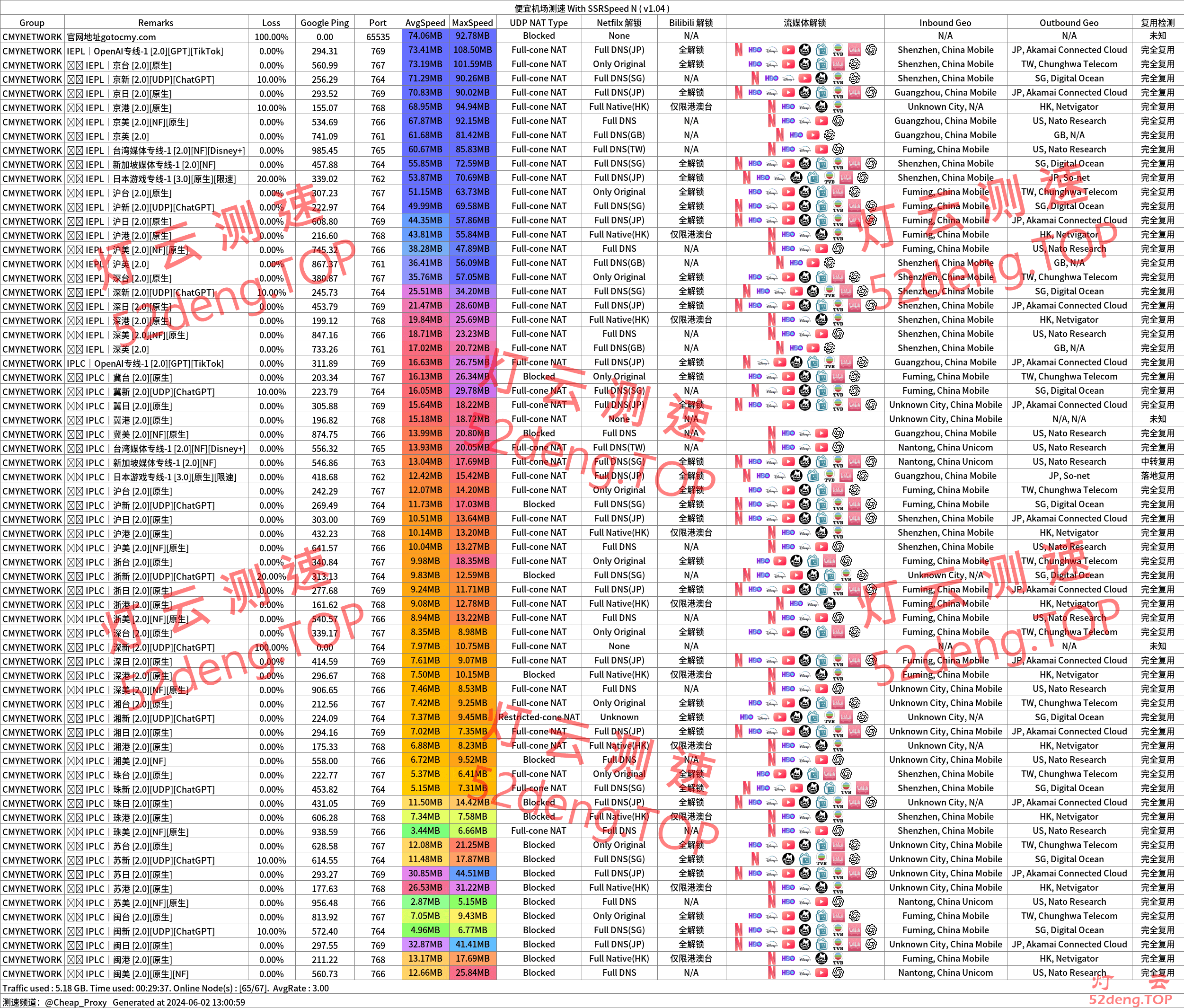 1)xgCloud所有线路节点Speedtest测速