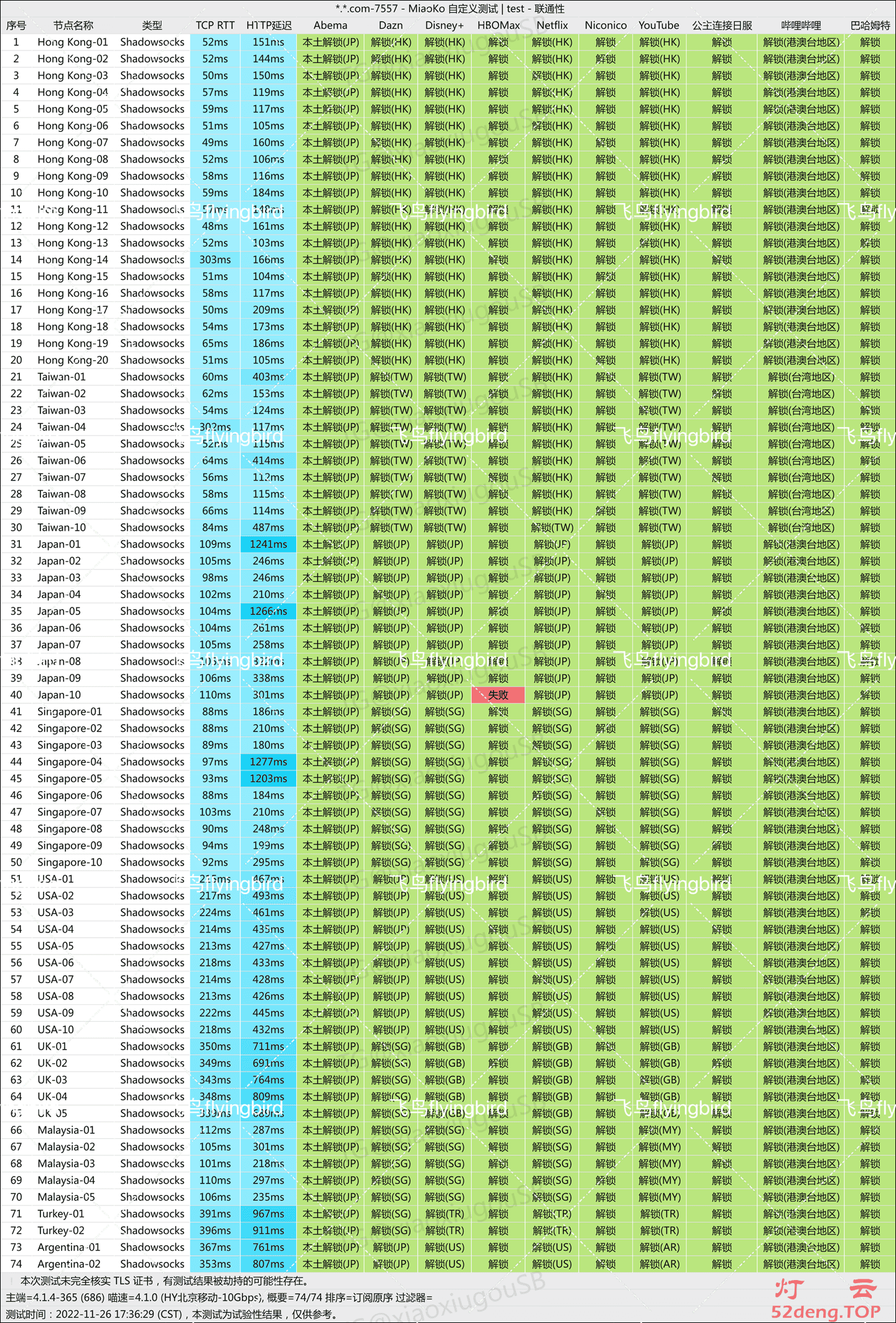 (1)飞鸟加速器所有线路节点Speedtest测速