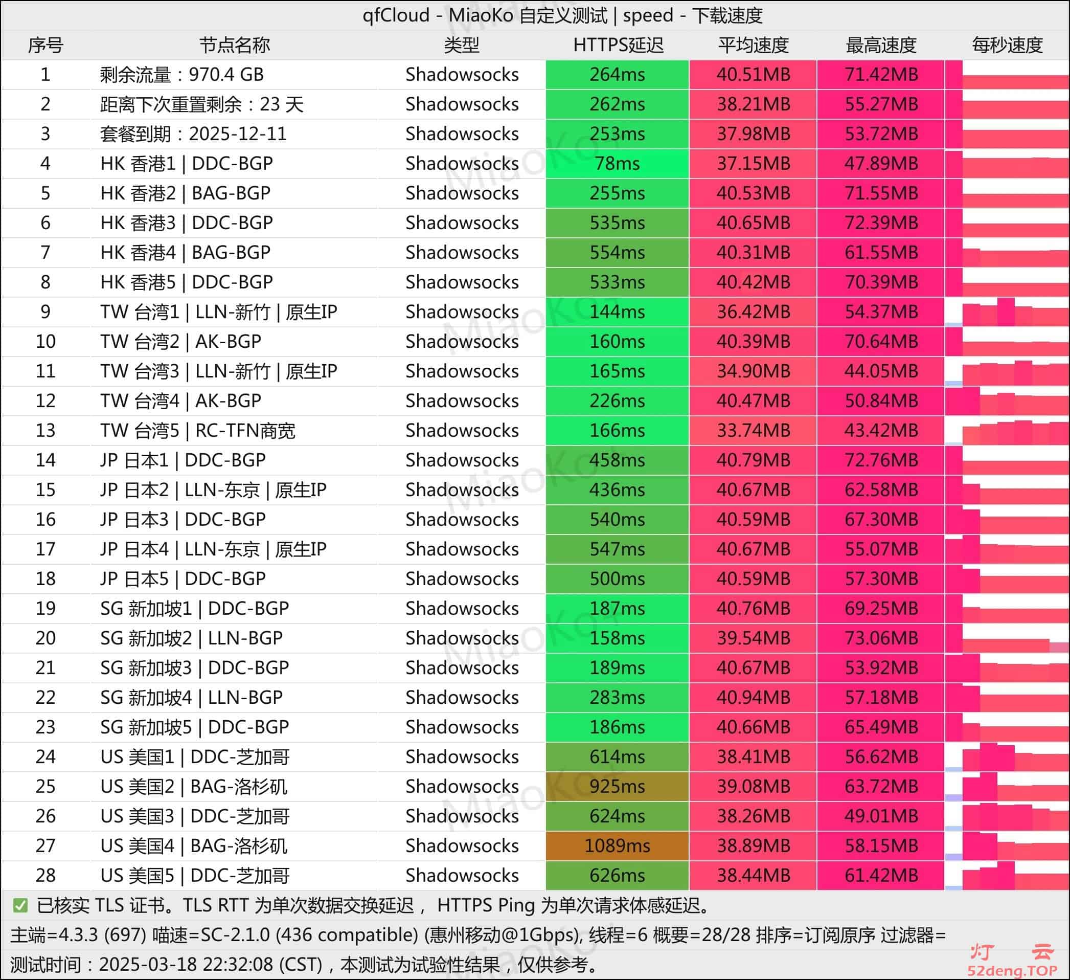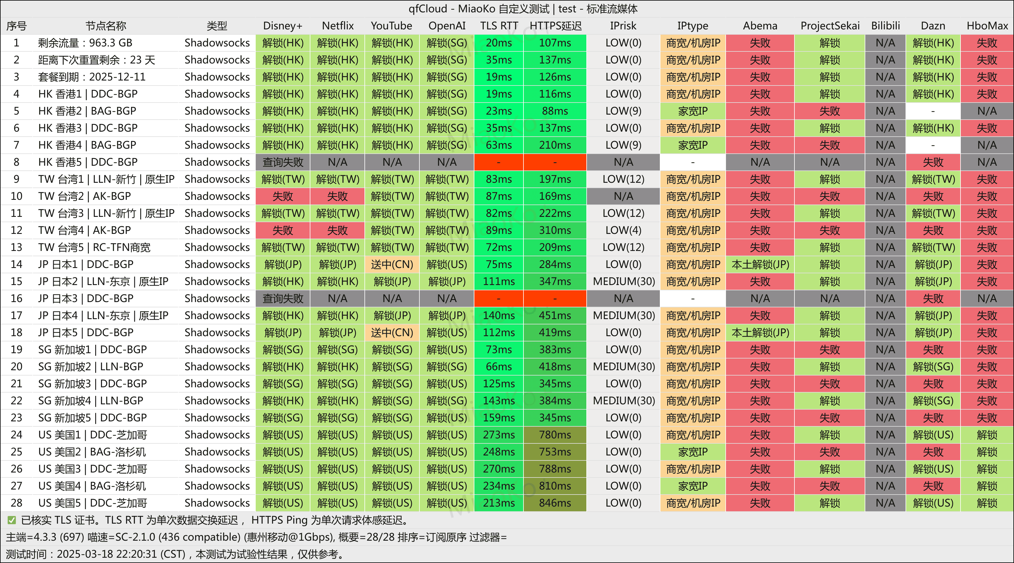qfCloud,中文名称千帆云,是一家低调运营的高速稳定SS机场,拥有近30条优质线路,遍布全球各地,流量套餐种类也非常丰富,可以满足各种应用场景的需求。此外,qfCloud机场全部使用国内BGP入口和金融企业级IPLC/IEPL国际专线,而且全节点解锁奈飞Netflix/HULU/HBO/TVB/动画疯等国外流媒体视频,解锁 ChatGPT、Gemini、Grok(xAI)、Copilot、Meta AI、SageMaker 和 Siri 等国外主流AI工具。由于IPLC/IEPL内网专线不过GFW,不会被封锁,在特殊时期也非常稳定。此外,qfCloud不限制同时在线的设备数量,只要您套餐流量充足,自己可以随意使用。灯云使用一段时间后,我认为其服务器线路节点稳定性和网络连接质量都是非常优秀的。
