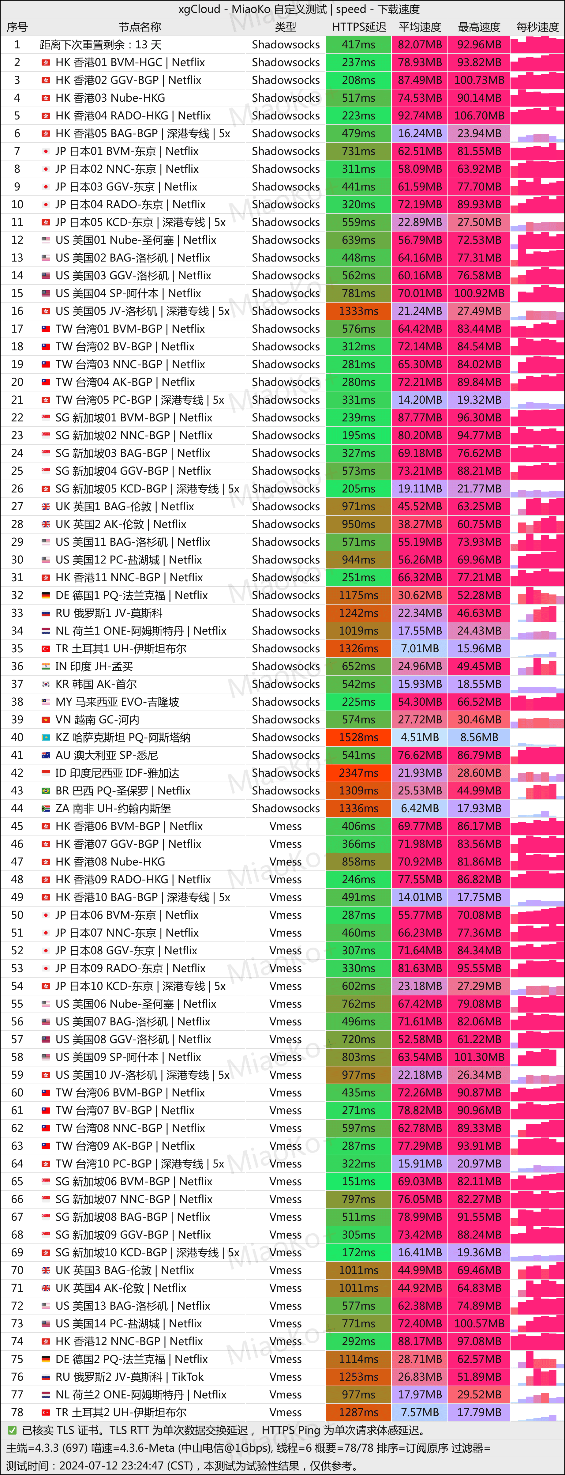 (1)xgCloud所有线路节点Speedtest测速